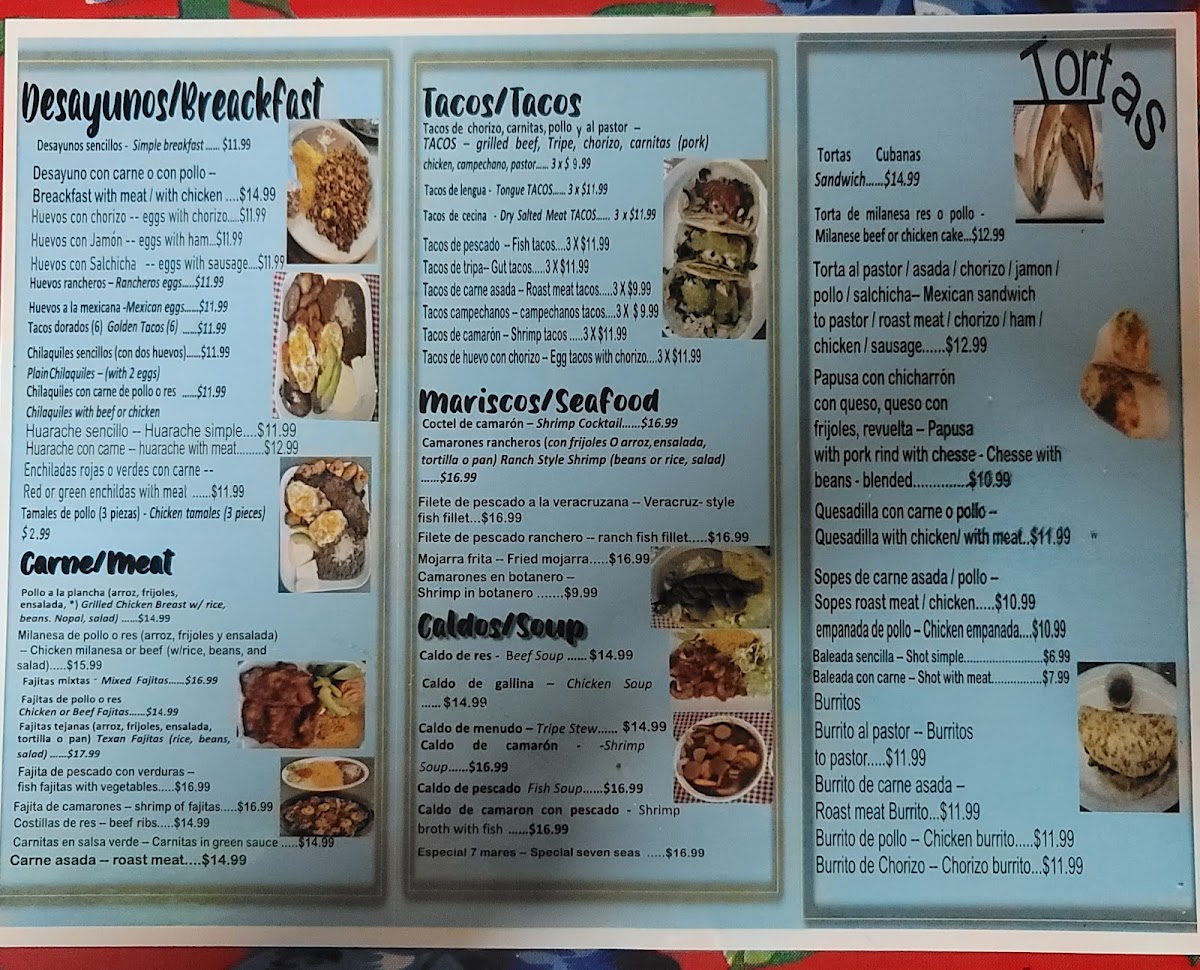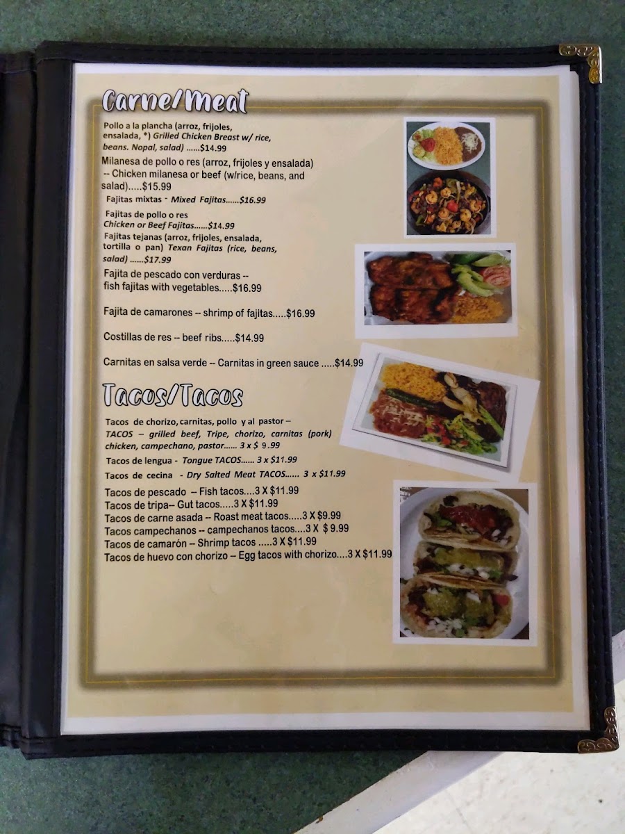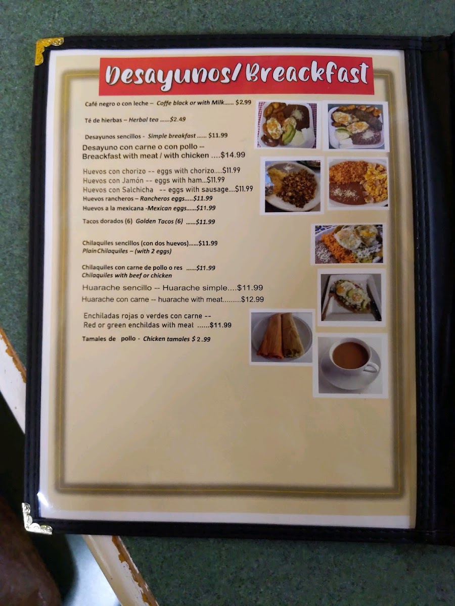 The menu highlights include traditional favorites like tacos de lengua, huaraches topped with fresh ingredients, and flavorful carne asada with steamed vegetables. Drinks such as creamy horchata and refreshing fruit smoothies pair naturally with the food, adding a touch of balance and refreshment that suits the warm, welcoming atmosphere of the space.